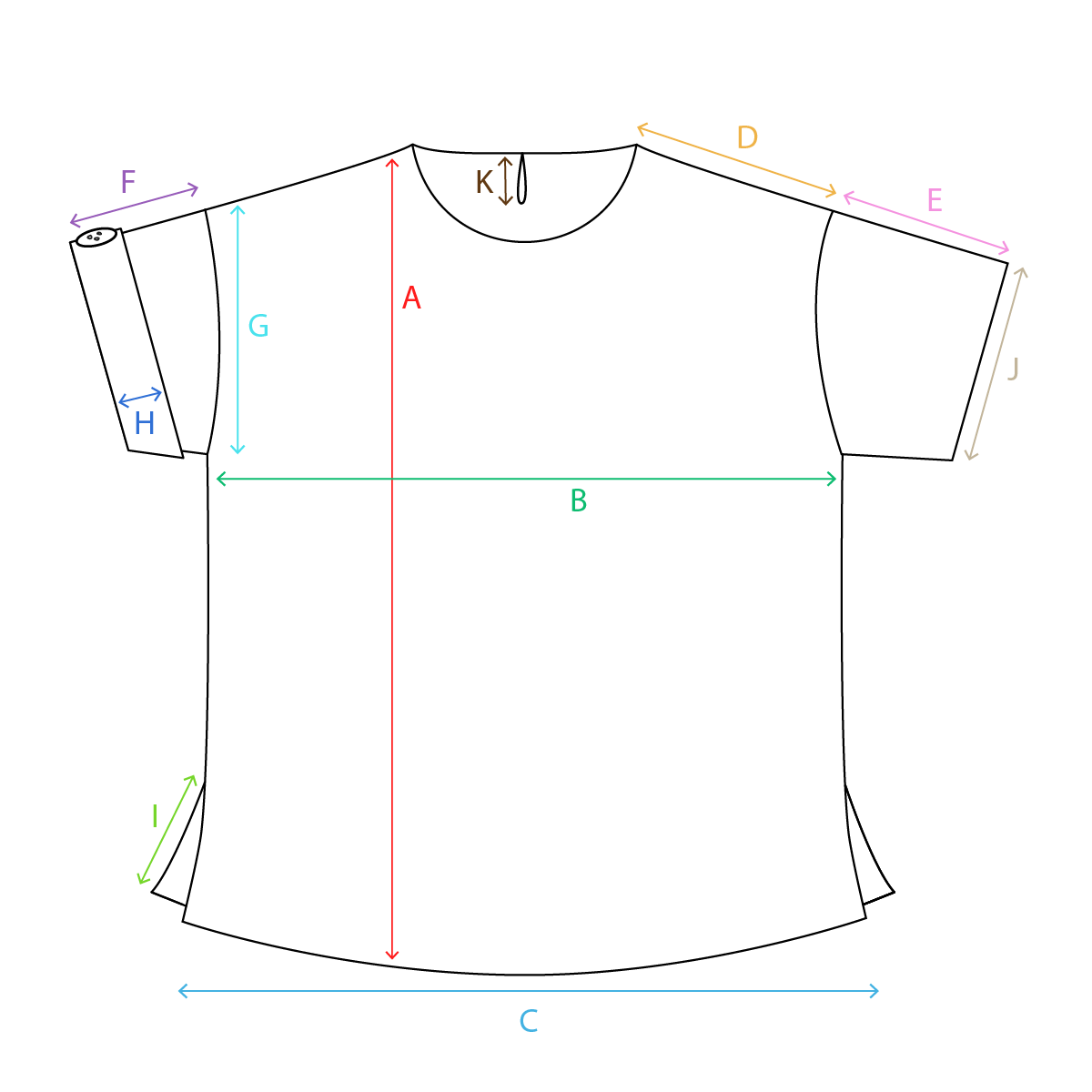 C Width at hem 50cm 52.5cm 54cm 57.5cm 60cm 64.5cm 68cm